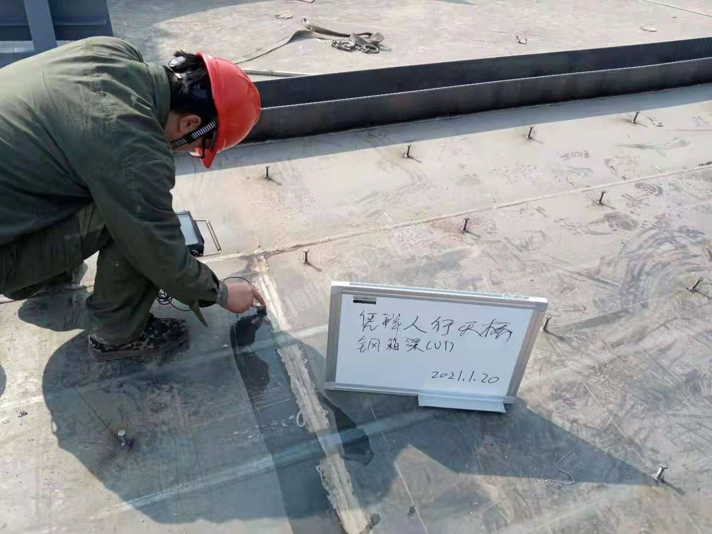 廣西憑祥人行天橋橋鋼梁焊縫探傷